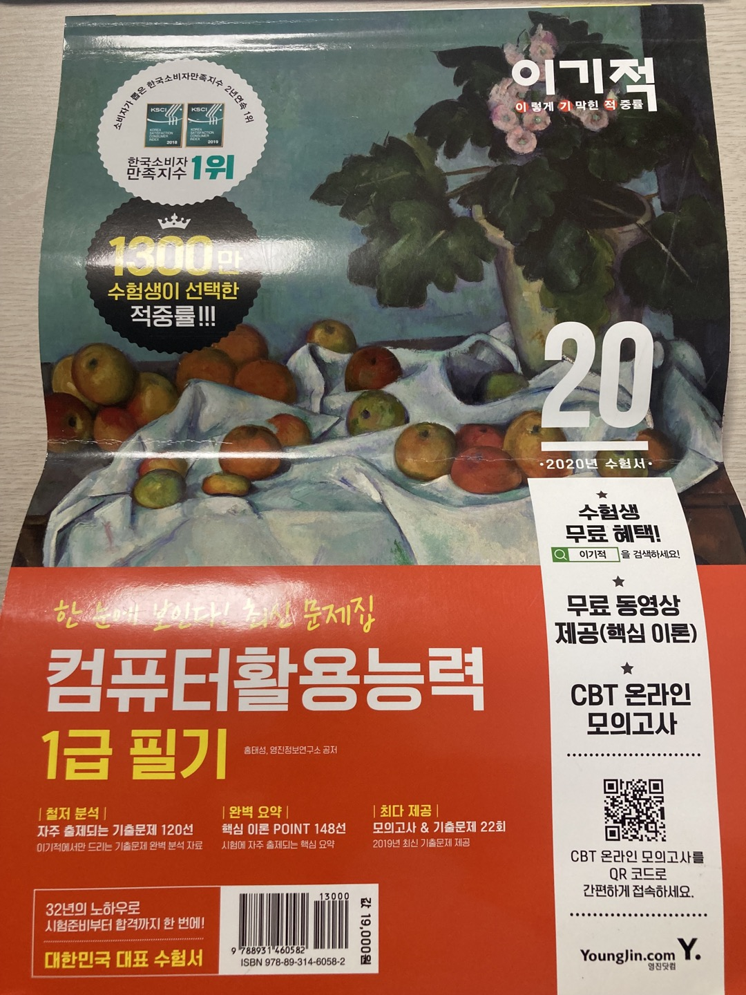 제가 준비했던 교재는 지금도 유명한 이기적 컴활 1급 문제집입니다. 근데 사실 문제집은 아무거나 사셔도 괜찮을 것 같아요. 예전에 따놓은 자격증이라 책도 2020년 버전이네요! 가격은 만원 후반대로 그때나 지금이나 동일하네요. (광고 아님)